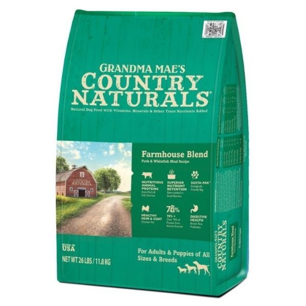 豬肉粉、燕麥、糙米、珍珠麥、白魚粉、芥花籽油(與生育酚,即維他命E混合)、乾蛋、豌豆、氯化鉀、小紅莓、藍莓、DL-蛋氨酸、氯化膽鹼、鹽、番薯、乾蘋果茸、乾菠菜、卵磷脂、L-離氨酸、磷酸二鈣、磷酸二氫鈉、絲蘭萃取物、乾嗜酸乳桿菌發酵物、枯草芽孢桿菌發酵產物、乾雙歧桿菌嗜熱發酵物、乾長雙歧桿菌發酵物、乾屎腸球菌發酵物、鋅蛋白、維他命E補充劑、煙酸、硫酸鋅、硫酸亞鐵、核黃素、銅蛋白、錳蛋白、維他命A補充劑、硫酸銅、d-泛酸鈣、維他命B12補充劑、硫酸錳、生物素 (維他命B7)、維他命D3補充劑、鈷蛋白、硫胺素硝酸鹽 (維他命B1硝酸鹽 )、葉酸 (維他命B9)、亞硒酸鈉、碘酸鈣