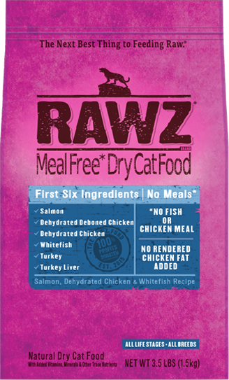 RAWZ® Salmon, Dehydrated Chicken & Whitefish Recipe Cat Food is formulated to meet the nutritional levels established by the AAFCO Cat Food Nutrient Profiles for all life stages.