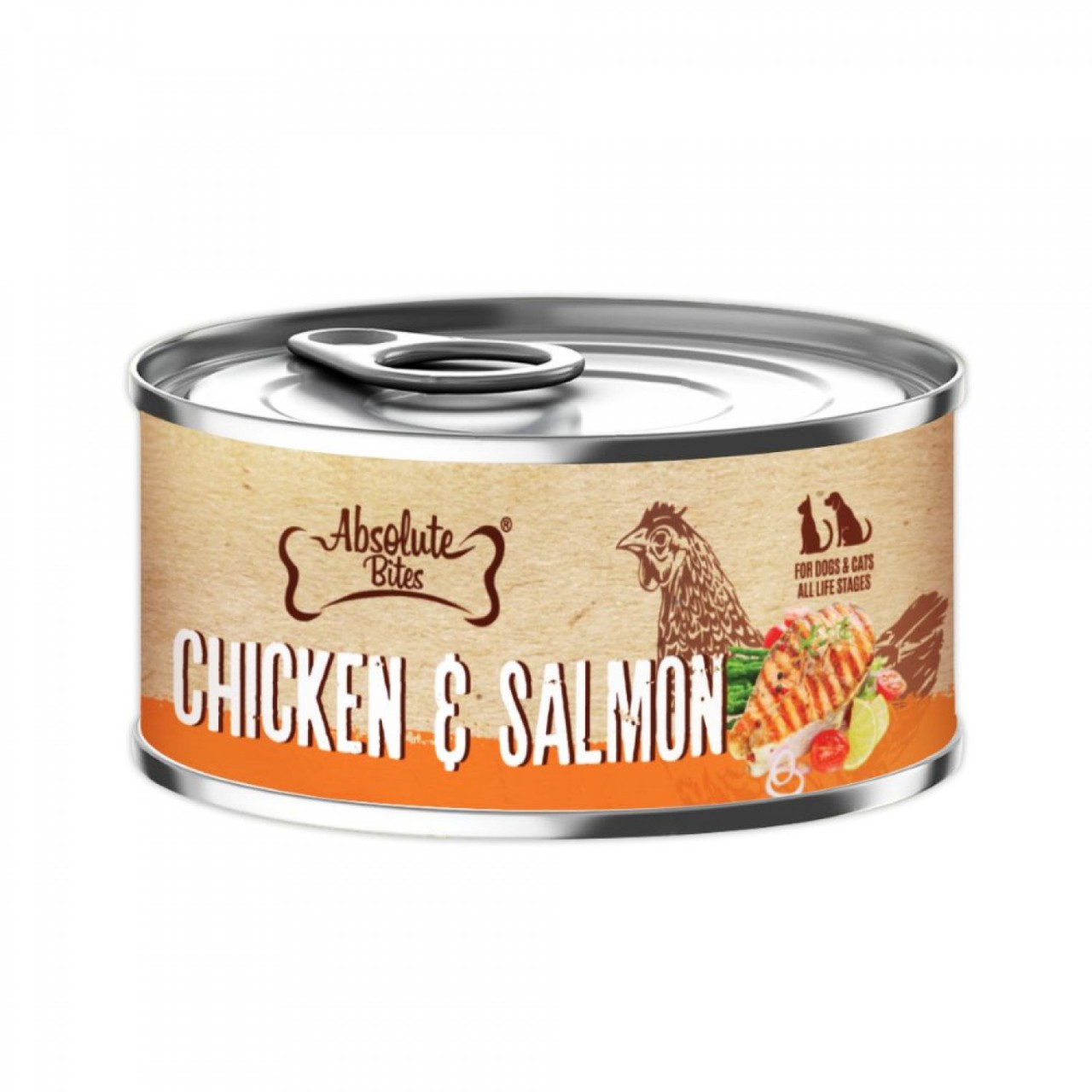 新鮮去骨雞肉、新鮮去骨鮭魚、水、補充維生素E(α-生育酚)、牛磺酸、FOS(低聚寡糖)、膠凝劑、鮪魚萃取物