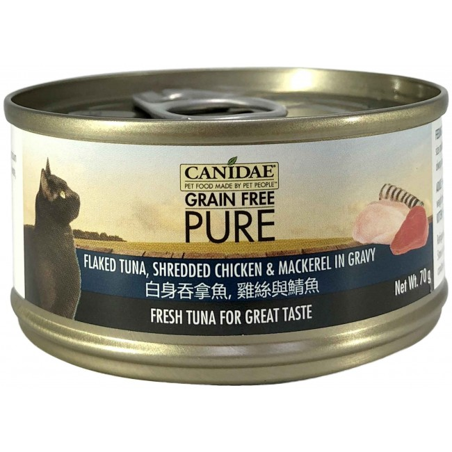 CANIDAE® PURE 白身吞拿魚與雞絲與鯖魚貓罐頭 70g