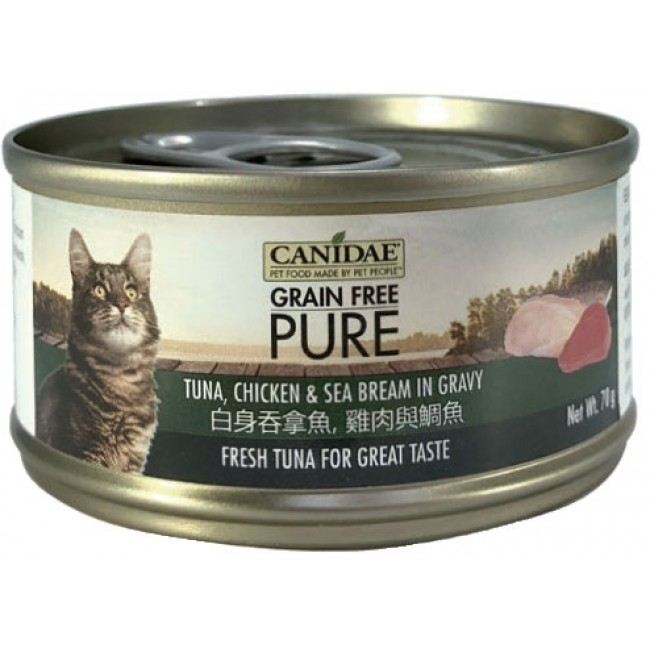 CANIDAE® PURE 白身吞拿魚,雞肉與鯛魚貓罐頭 (肉塊) 70g
