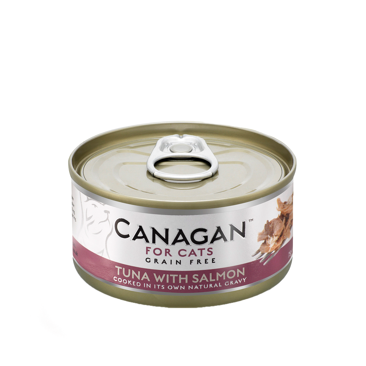 Tender flaked tuna and delicious morsels of salmon, simply cooked in their own natural gravy. A highly nutritious complete food for cats that can also be used to accompany dry food. All our tuna is ocean-caught using dolphin-friendly methods.