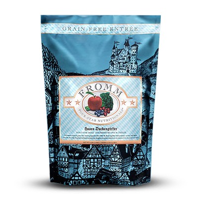 Fromm Four-Star Nutritionals® Hasen Duckenpfeffer® Food for Dogs is formulated to meet the nutritional levels established by the AAFCO Dog Food Nutrient Profiles for All Life Stages, including growth of large size dogs (70 lb. or more as an adult).