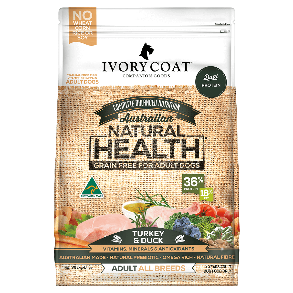 Australian Natural Health™ was developed by Ivory Coat to be the finest food for your companion’s balanced nutrition and everyday feeding. Made in Australia, this protein rich and grain-free dry food promotes healthy digestion and is packed full of wholesome ingredients including a high concentration of quality animal protein for lean muscle maintenance.