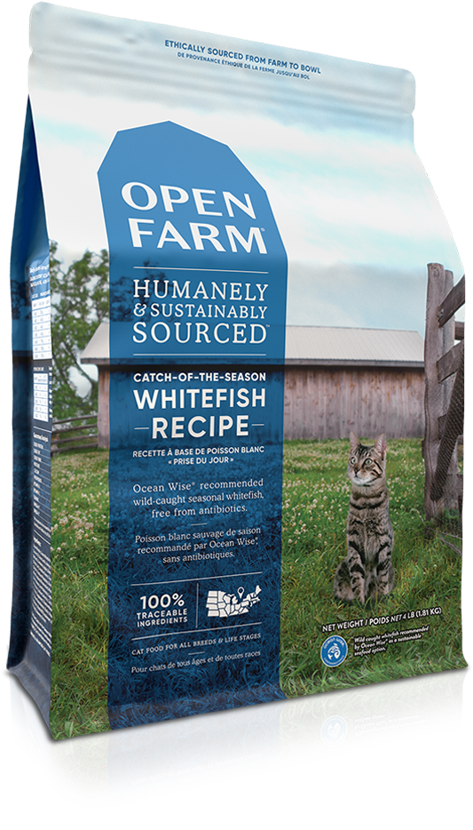 Open Farm Catch-of-the-Season Whitefish Recipe is formulated to meet the nutritional levels established by the AAFCO Cat Food Nutrient Profiles for all life stages.