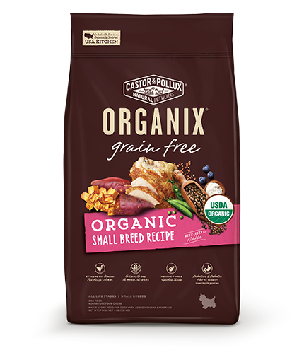 ORGANIX Grain Free Small Breed Recipe Dog Food is formulated to meet the nutritional levels established by the AAFCO Dog Food Nutrient Profiles for All Life Stages including growth of large size dogs (70 lbs or more as an adult).