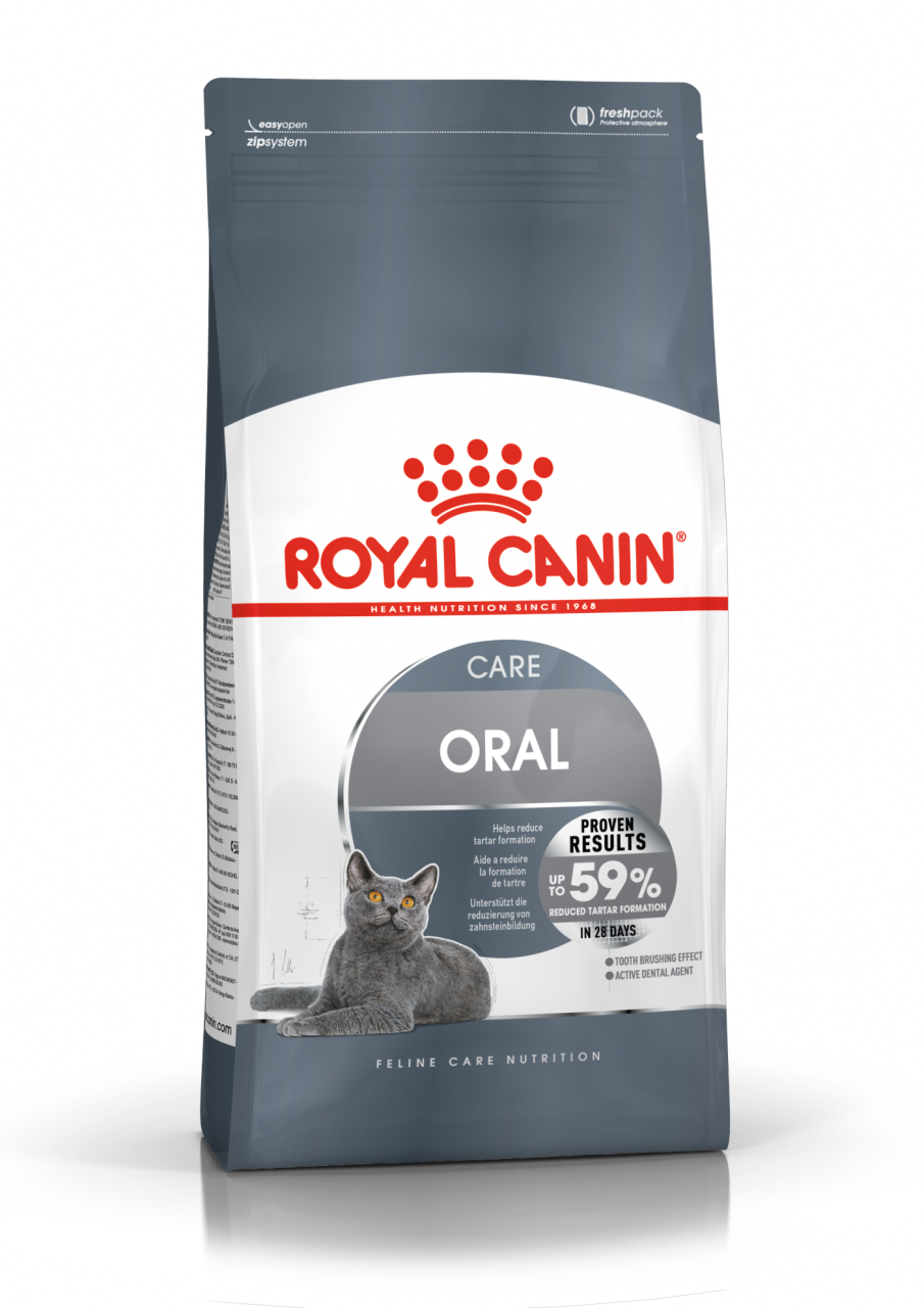 單獨餵食強效潔牙配方飼料28 天減少牙菌斑最高59%* *2005年法國皇家內部試驗 - 對照組僅餵食不含潔牙配方的飼料,比對最脆弱的牙齒。