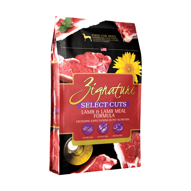 Zignature Select Cuts 卓越精選羊肉配方首兩項主要成分採用優質羊肉和乾燥羊肉,並加入對犬隻健康有益的天然食材,例如燕麥、小米和藜麥,確保你的愛犬獲得最滿足的營養。羊肉提供大量豐富的蛋白質,同時也是鐵、鋅和維他命 B12 的重要來源。羊肉能促進及維持犬隻肌肉的生長。藜麥是歷史悠久的健康食材,是一種不含麩質的全穀物,並富含大量優質維他命和礦物質。